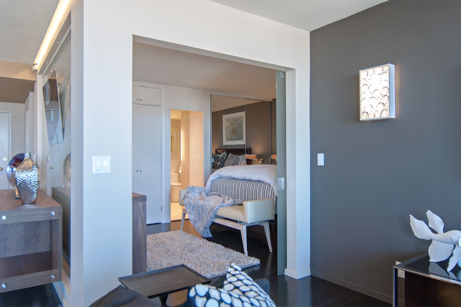 A small one bedroom Penthouse apartment in San Francisco my clients used as a Pied-a-terre in Pacific Heights. As anyone can see from the photos it was a extensive renovation. The final results were stunning. And again I was Architect and Designer on this project as I am on all my projects.